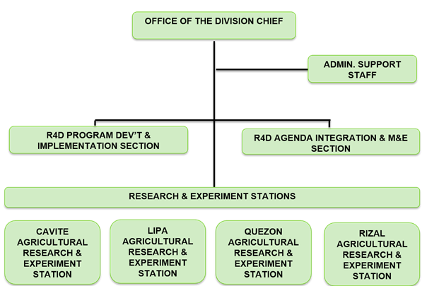 A dynamic organization that effectively responds to the needs of the agriculture sector in Region IV (CALABARZON) in support of the goals and objectives of AFMA through excellence in research and Development.